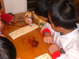 第一次看到電燒筆,小朋友們都目不轉睛的看著我們藝師拿著筆頭轉呀轉~
