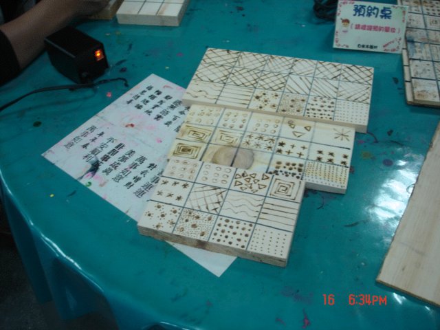 化的結果,藉由溫度的控制與筆尖操作的速度,可以烙燒出深、淺、粗、細不